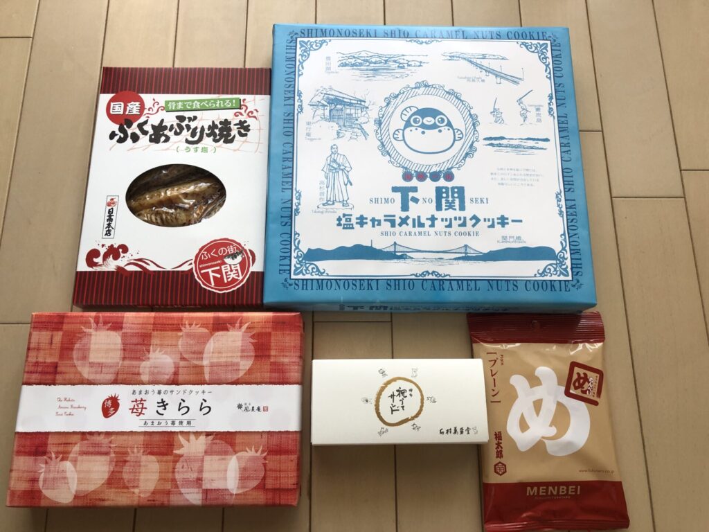 それから、小倉ではなく福岡のものだけど、あまおうのお菓子と、安定のめんべい。