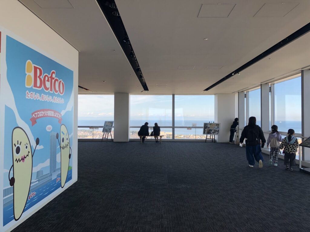 名前の通り、人気のお煎餅「ばかうけ」でおなじみの栗山米菓(Befco)がスポンサーをしていると思われる展望室で、なんとホテルに泊まっていなくても無料で入れるんですよ。