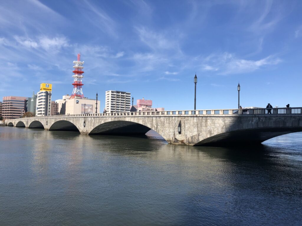 そのまま信濃川沿いを、川の流れをさかのぼるように歩いていくと、新潟市が誇る国指定重要文化財の萬代橋が見えてきました。