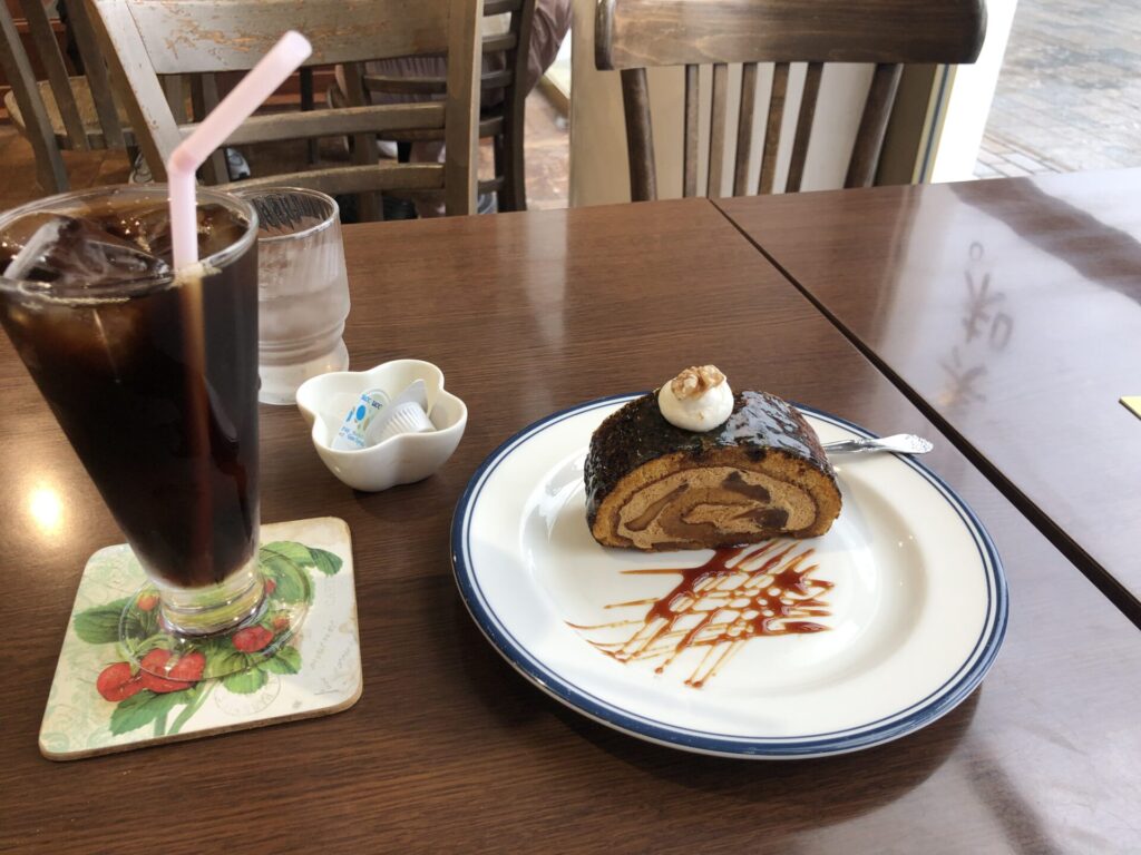 お土産屋さんをちょっとひやかして、隣にあったケーキ屋さんの喫茶コーナーでひと休み。