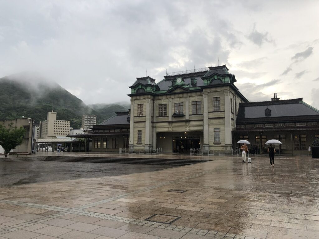 仕方なく、ずぶ濡れ覚悟で門司港駅へ向かいました。