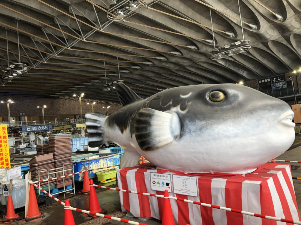 その名にふさわしく、ここ唐戸市場でも、あちらこちらにふぐの姿が…