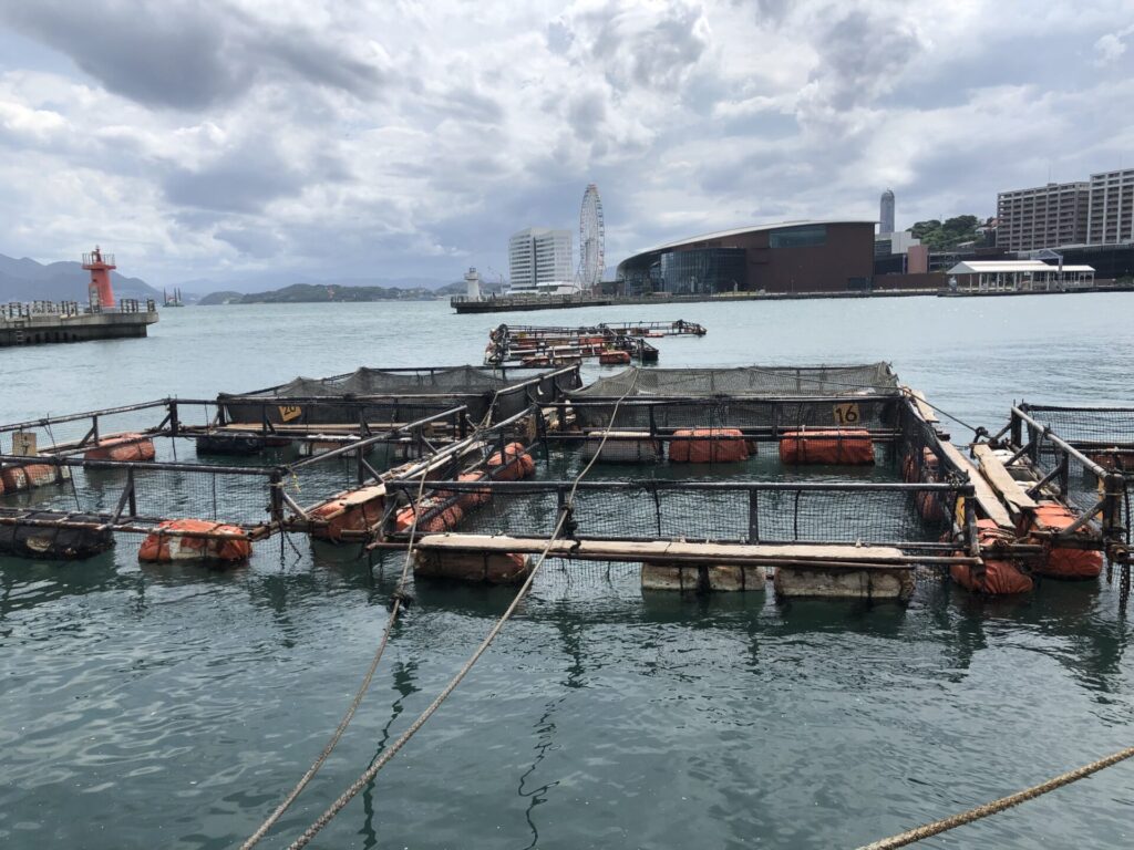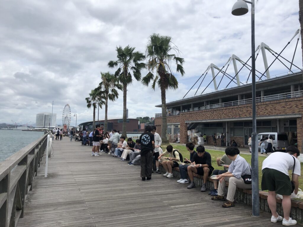 みなさん、潮風に吹かれながら海を眺めつつ、ここでお寿司を楽しんでいました。