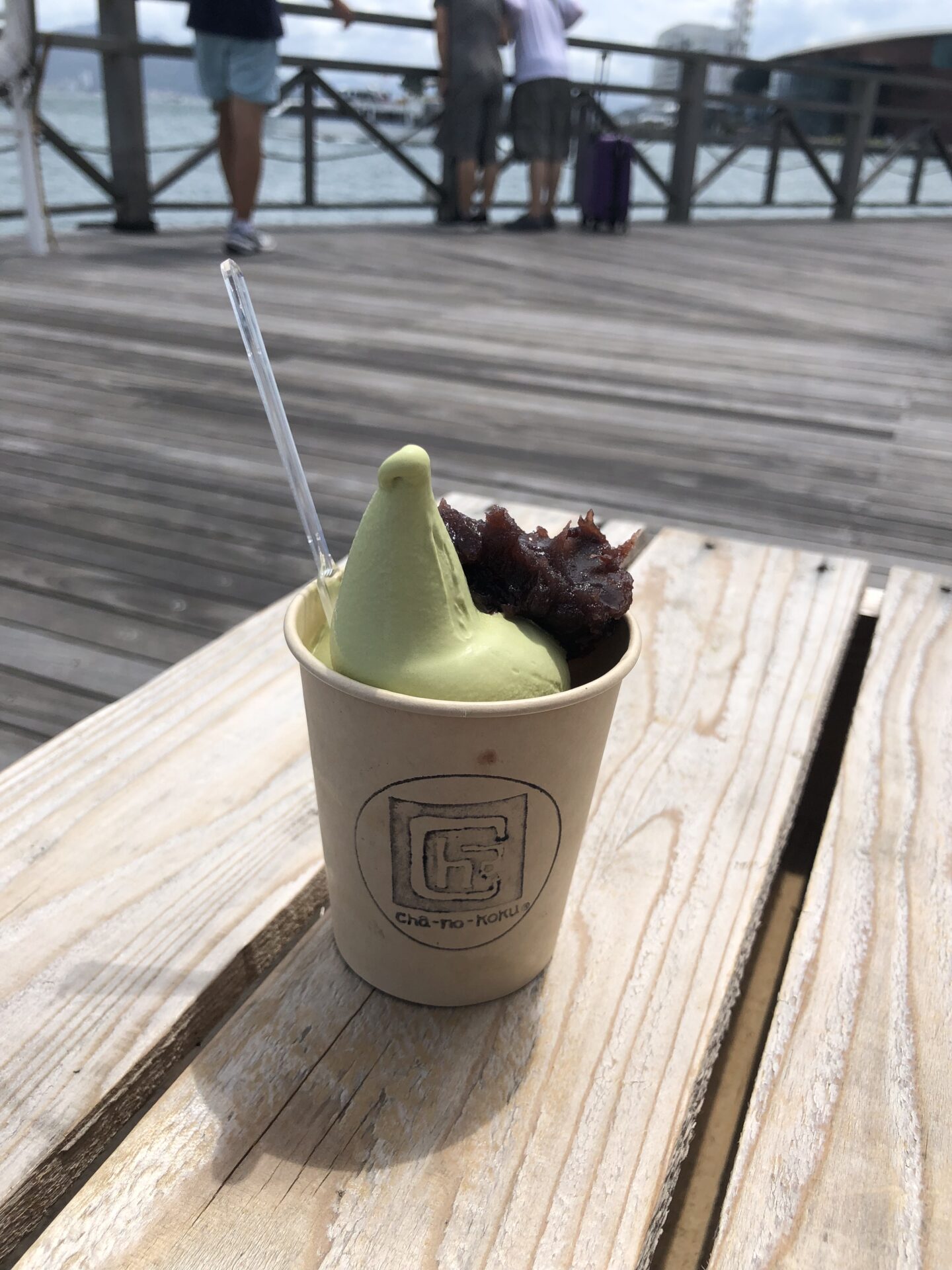 門司港旅行 ふぐの唐戸市場で小野茶ソフトクリームを食べる