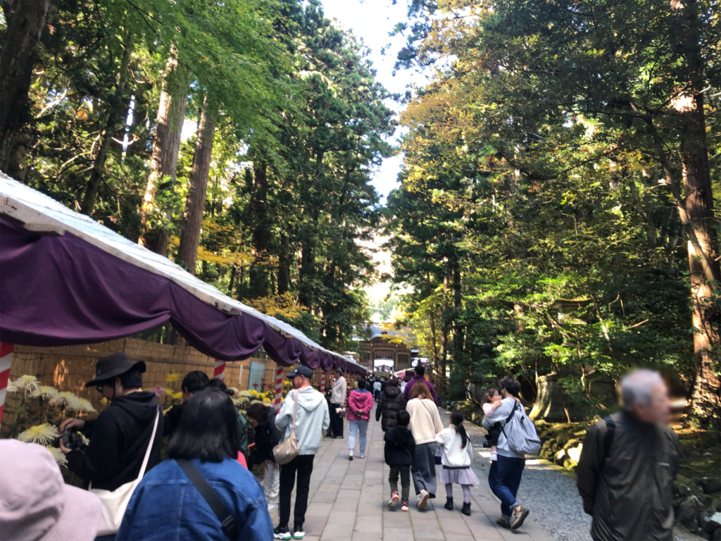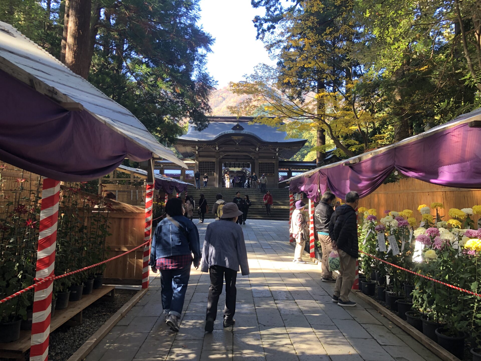 ちょうど紅葉のピークに加えて、彌彦神社では菊まつりの真っ最中ということもあり、