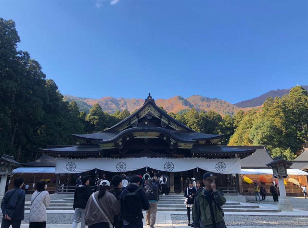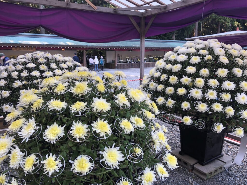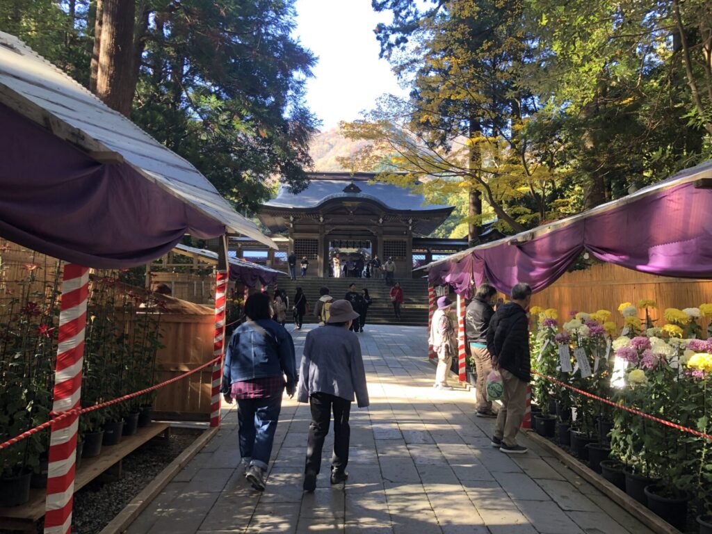そんな菊の世界に浸っているうちに、そろそろ御本殿が見えてきましたよ。